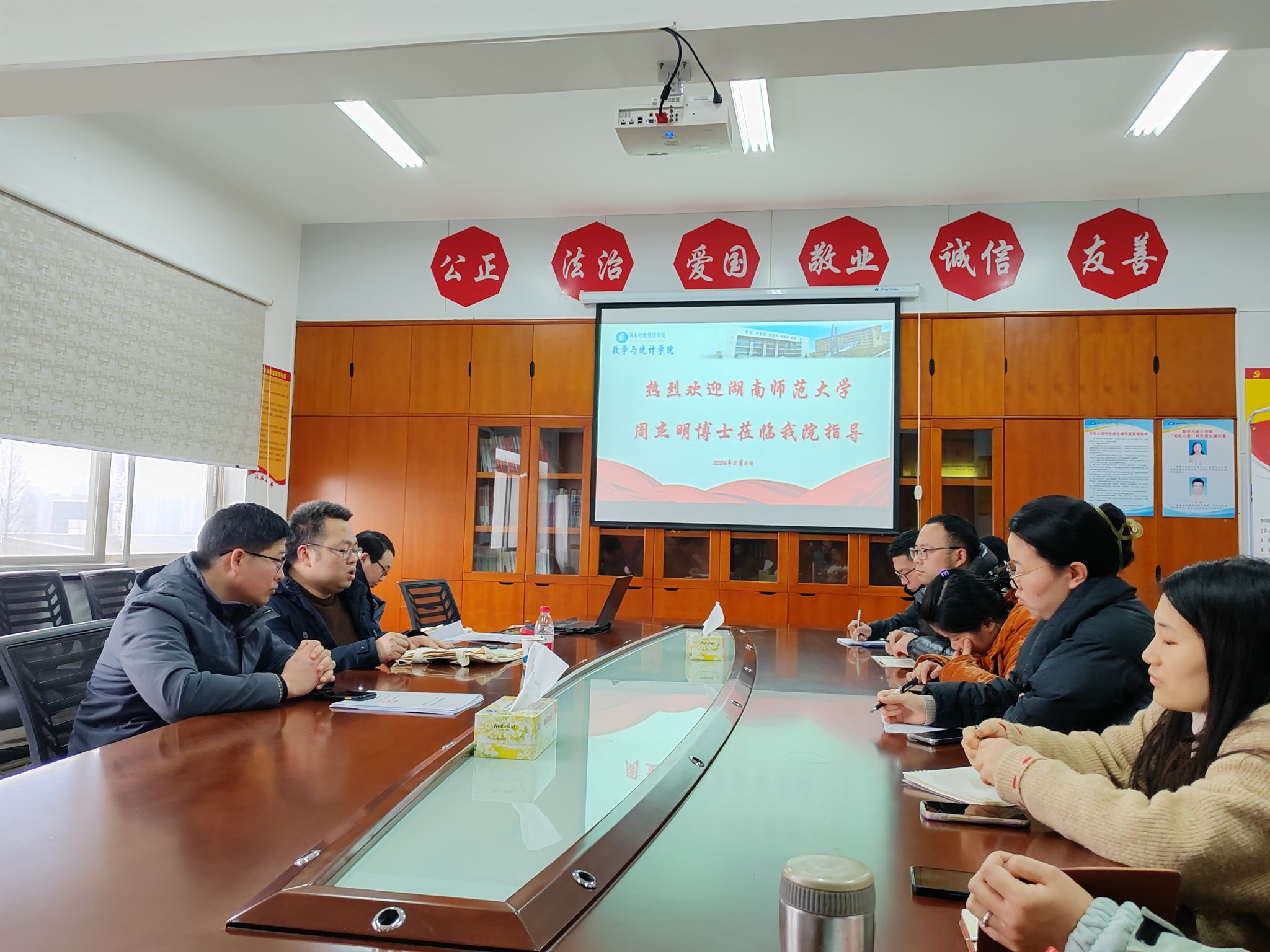 2024年3月6日下午,我院在办公楼809会议室召开学科竞赛与本科生人才培养工作会议,特邀请湖南师范大学数学与统计学院周杰明副教授参会指导。会议由吕胜祥副院长主持,学院全体博士及相关专业老师参加。