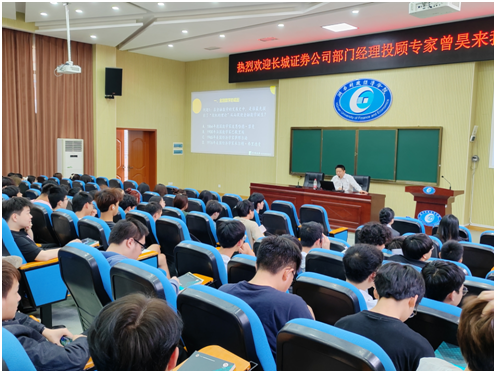 (本网讯)4月12日下午,数学与统计学院邀请长城证券公司资深投顾经理曾昊在第二教学楼2J02学术报告厅为2022级金融数学专业学生作专业认知讲座。讲座由数学与统计学院副院长范国兵主持。讲座会现场曾昊以“金融数学发...