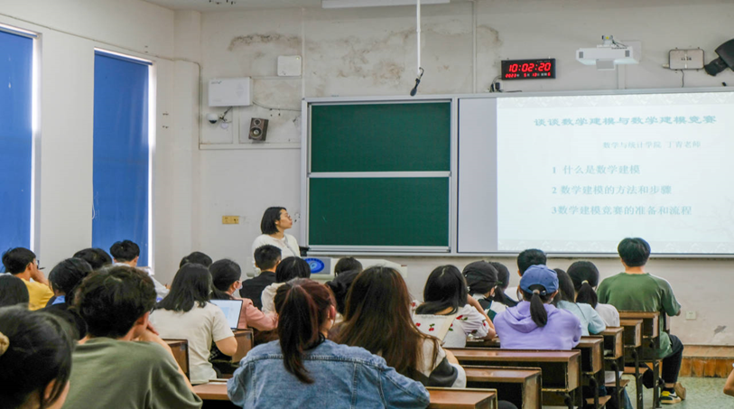 (本网讯)5月13日上午,数学与统计学院在二教学楼114教室举办数学建模竞赛专题讲座。竞赛指导老师丁青担任主讲,学院100余名师生到场聆听。 讲座现场丁青从竞赛概况、时间安排、竞赛要求等方面着手,向同学们介...