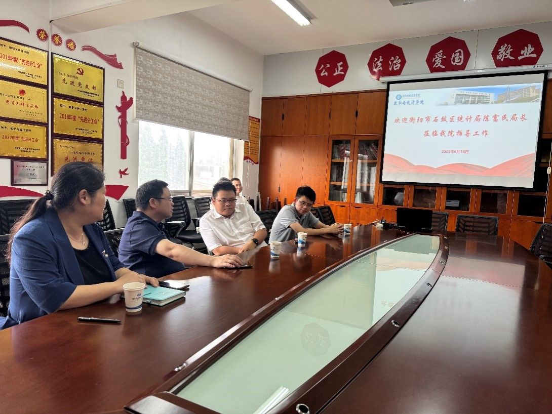 为深化校地合作,创新人才培养模式,6月18日数学与统计学院特邀请衡阳市石鼓区统计局局长陈富民一行4人来学院就实习基地建设等事宜进行洽谈。会上学院院长尹向飞简要介绍了学院的专业特色、学科建设和人才培养情况,希望双方通过洽谈在实习基地、实践课程教学、毕业生实习就业等方面全方位、深层次地开展合作,深入推进产学研活动的开展。best365官网校友、现任石鼓区统计局长陈富民说学校学生的基本功扎实,综合素质能力较强,期待在就业实习等方面能与学院开展合作,...