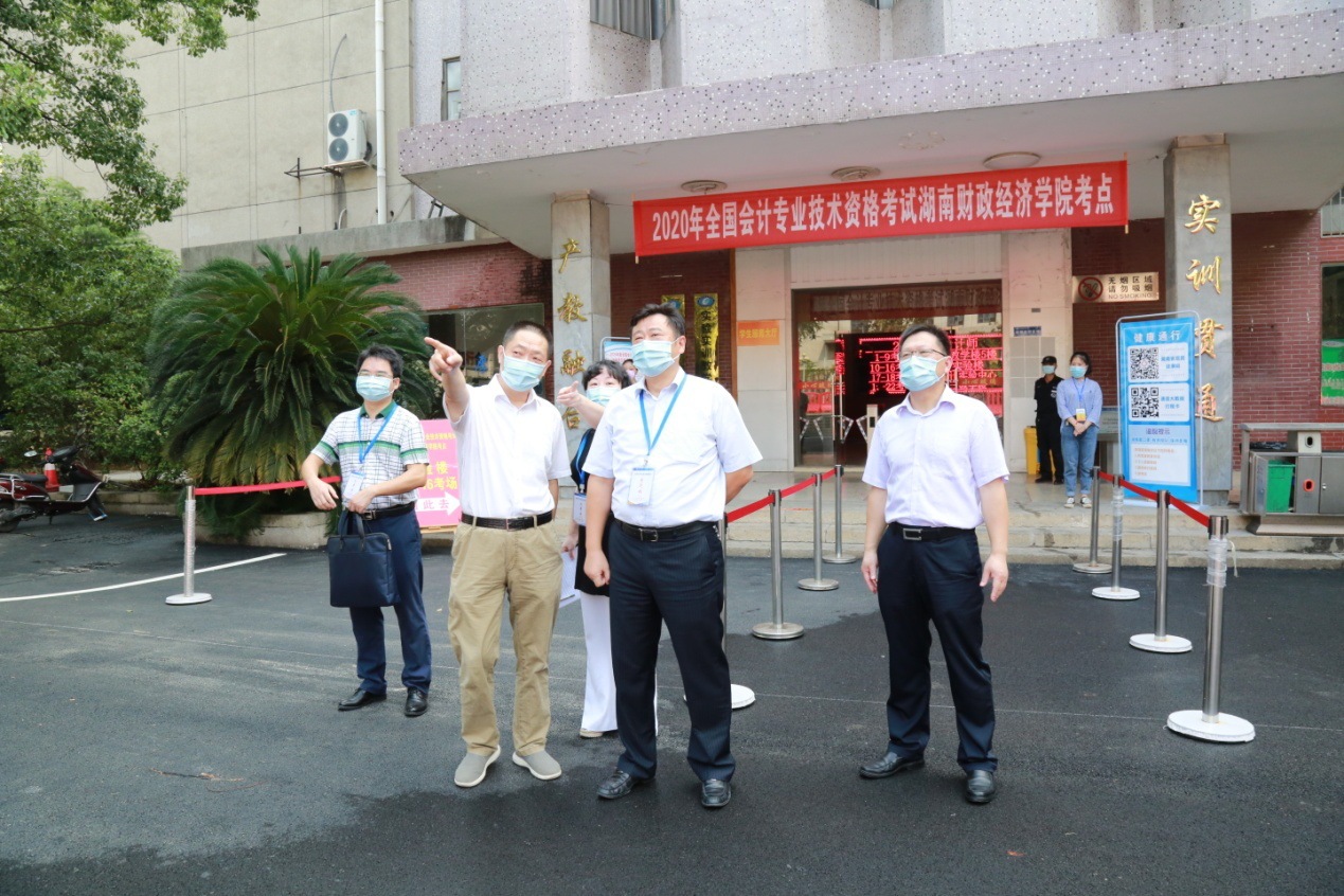 (本网讯)9月1日上午,省纪委省监委驻省财政厅纪检监察组组长、厅党组成员石建国,省财政厅会计管理处处长曾子兰,长沙市财政局总会计师杨健、会计处处长夏跃兵一行来best365官网就2020年度会计专业技术资格全国统一考试组考工作进行现场检查。学校党委书记肖湘愚、校长刘长庚、副校长刘建民、副校长王焕清、纪委书记李雪山及相关职能部门负责人陪同检查。