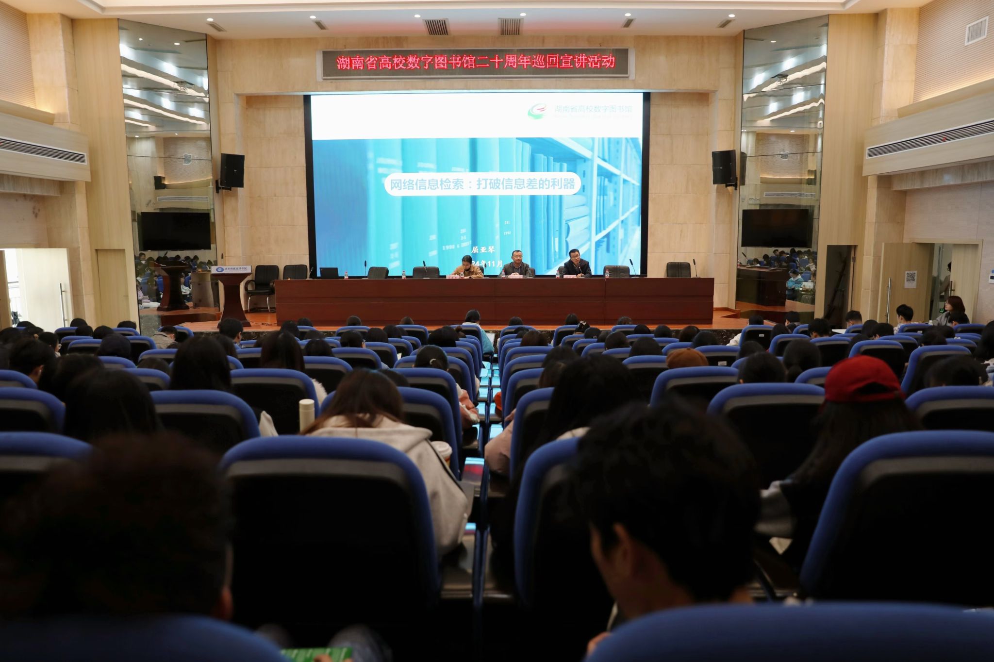 2024年11月27日下午,湖南省高校数字图书馆20周年巡回宣讲活动在best365官网图书馆报告厅隆重举行。此次活动由湖南省高校数字图书馆(以下简称为高数图)建设责任单位湖南师范大学图书馆的胡开胜副馆长带队,best365官网图书馆馆长刘纳新教授亲自主持,吸引了全校 180 多名师生前来聆听,共同见证了这一知识共享的高光时刻。