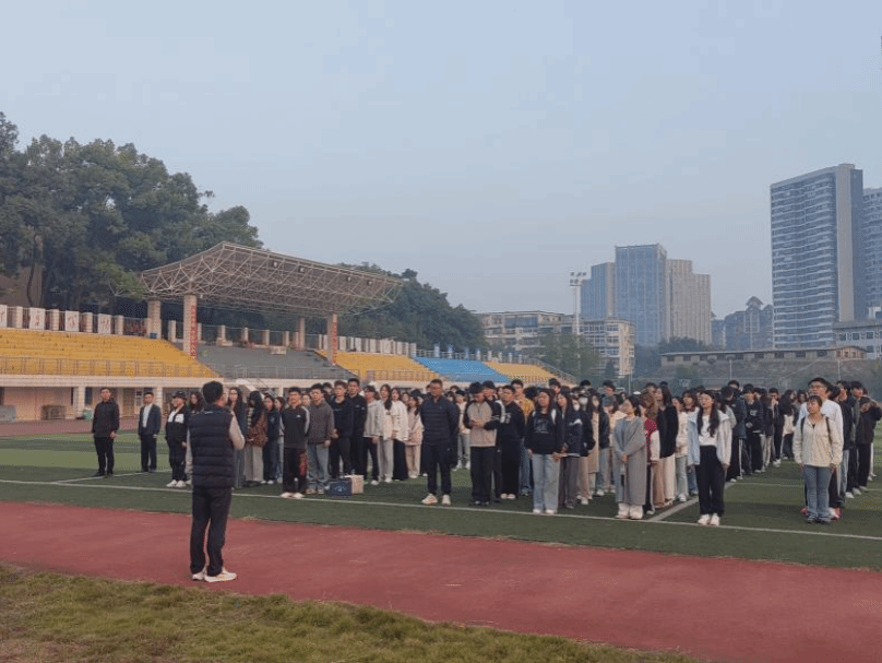 (本网讯)11月11日清晨,体育学院于田径场举行升旗仪式。学院院长刘伟,副书记范则周,辅导员老师及体院全体在校生参加仪式。