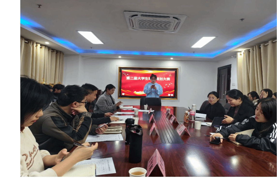 (本网讯)为帮助学生明确职业方向,提升职业规划能力,为未来的职场之路奠定坚实基础,12月4日下午3点,体育学院于体育馆237会议室举办职业生涯规划院赛。体育学院直属党支部副书记范则周、学工办主任黄涛、团总支书记邓玉平、体育经济与管理系主任文杰、教师张叶、曹智颖、家三爱、易钰杰以及全体参赛同学参与活动。会议由体育学院科创部副部长周爽主持。