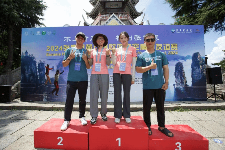 此次比赛有来自中国、法国、西班牙、日本等国家和地区的24位选手在黄石寨千米高峰惊险竞技,这是湖南高校学生参与的首次高空扁带赛事。经过激烈竞争,体育学院休闲体育专业的四名学生——单晓美、向阡霖、殷鸿辉和邓建伟在为期五天的全国高校高空扁带训练营中脱颖而出,参加结营赛。