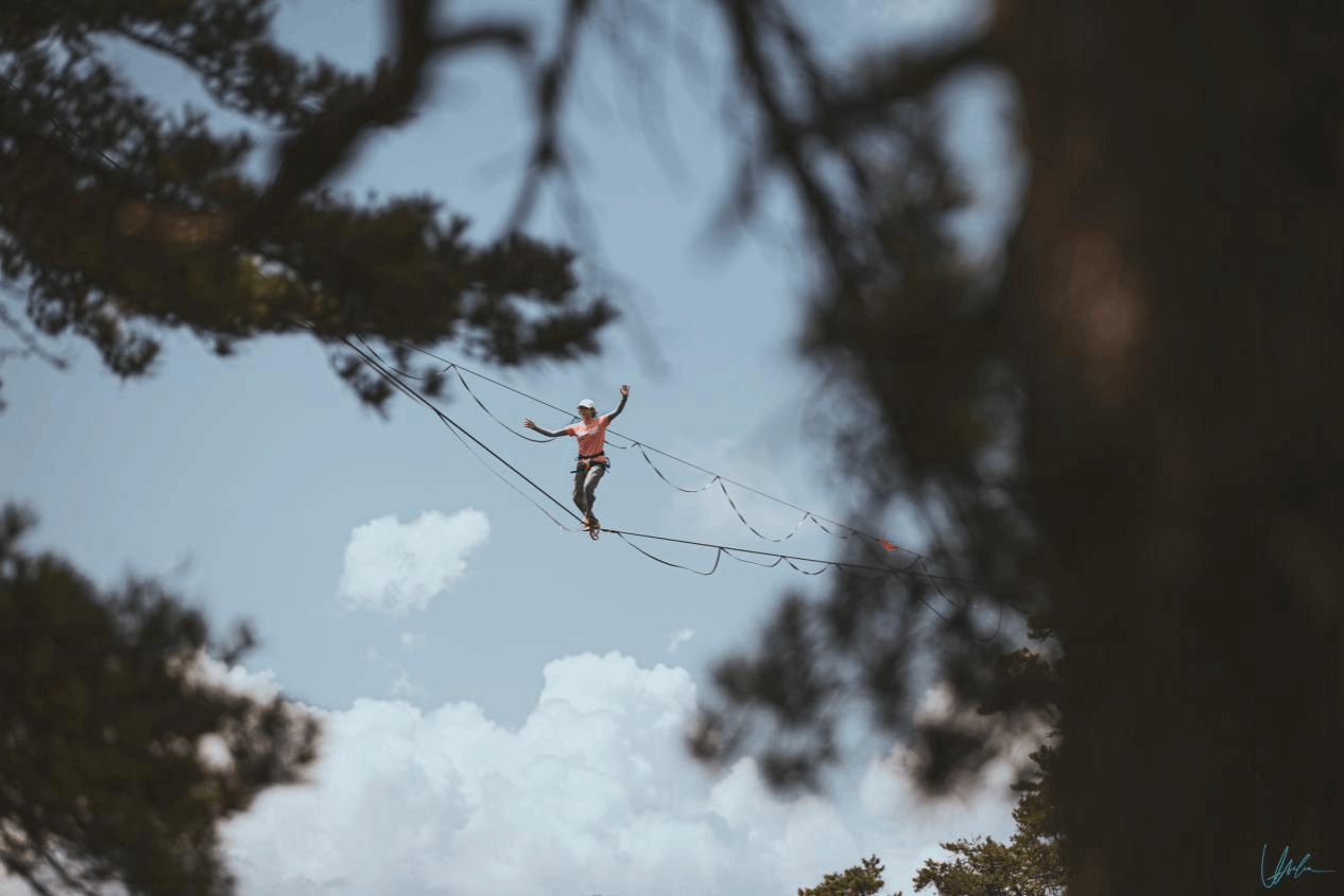 扁带运动,被誉为“绳索上的芭蕾”,是一项源自攀岩的新兴体育运动,融合多种时尚运动元素,是极具观赏性和挑战性的年轻运动。在刚刚结束的巴黎奥运会上,扁带表演惊艳亮相开幕式,进一步推动了其在全球范围内的推广与发展。它按空间区域可分为低空扁带和高空扁带,后者更是在距离地面五米以上的高度架起软扁带,让参与者在上面行走或完成花式动作,极大锻炼了人的身体素质和心理素质。