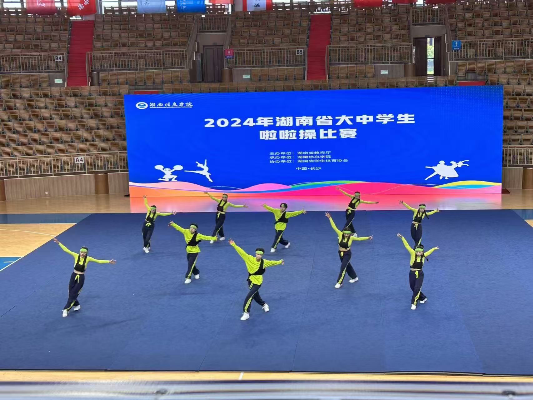(本网讯)10月20日,2024年湖南省大中学生体育舞蹈、啦啦操、健美操比赛在湖南信息学院举行,吸引了全省73所高校队伍参赛。best365官网体育舞蹈、啦啦操队表现出色,取得傲人成绩。荣获学院甲单项A组冠军、学院甲单项D组冠军、学院甲单项D组亚军、双人街舞第一名、集体街舞第二名、集体花球第三名、啦啦操团体第三名。