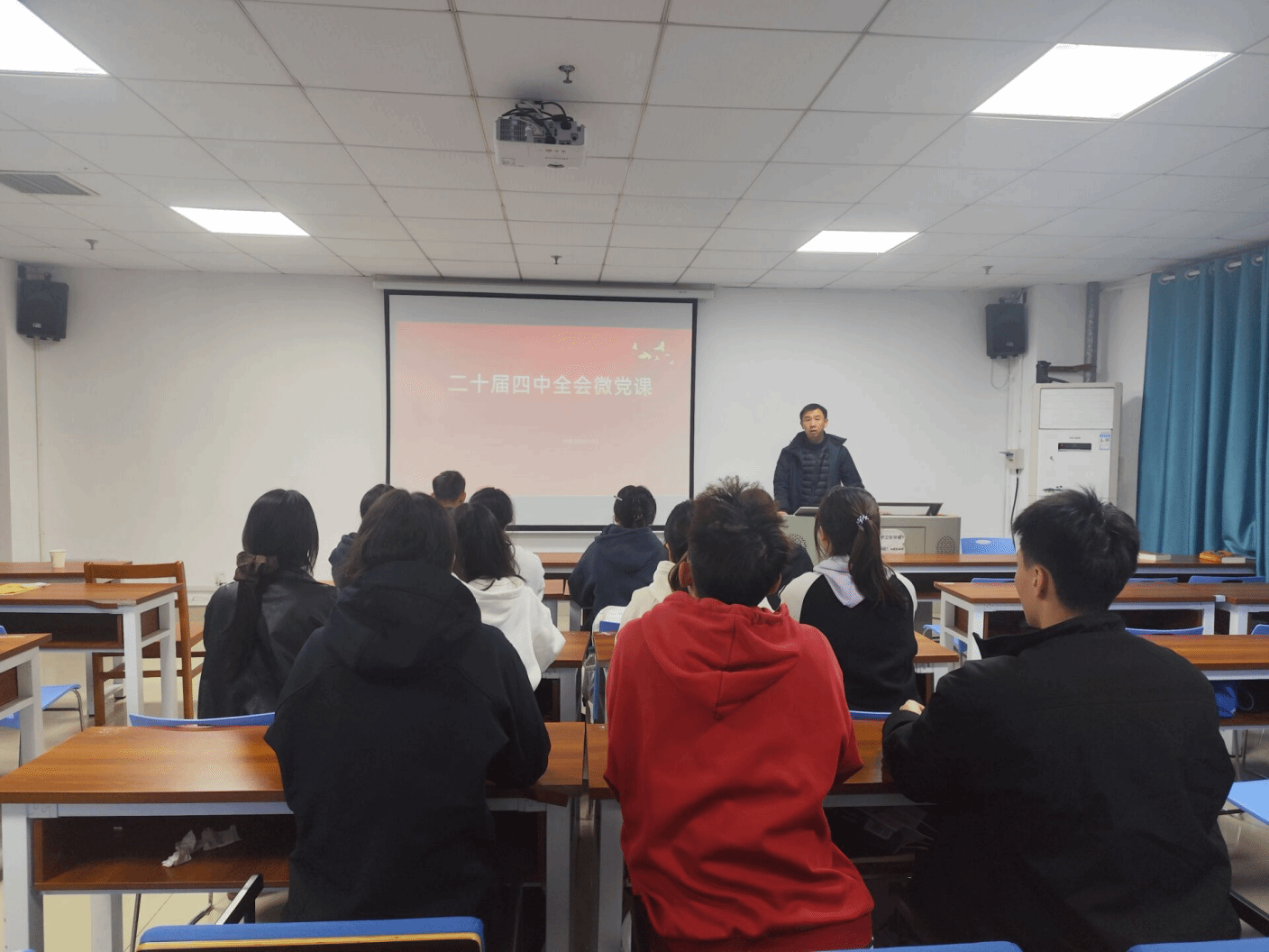 为引导广大青年党员深刻把握党的二十届四中全会的核心要义与时代价值,12月3日下午,体育学院直属党支部在体育馆238教室举办了“深入学习二十届四中全会精神,勇担新时代青年使命”专题党课。党课由学院直属党支部副书记范则周同志主讲,全体学生党员到场聆听。
