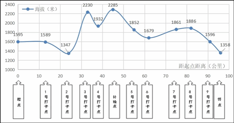2021(第四届)黄河石林百公里越野赛线路海拔变化图