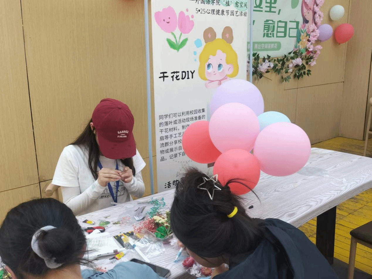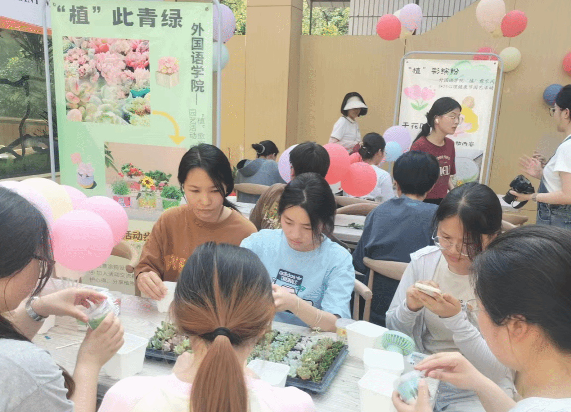 (本网讯)在5•25大学生心理健康日来临之际,为不断加强改进大学生心理健康教育工作,发挥心理健康教育的重要力量,在全院营造关注心理健康的氛围,5月24日下午,外国语学院于主校区阳光房成功举办“植”愈空间——5•25心理健康节园艺活动。外国语学院党委副书记张鹏、学校心理健康中心卿再花老师及学院辅导员马小红老师出席,共百余名同学参与此次活动。