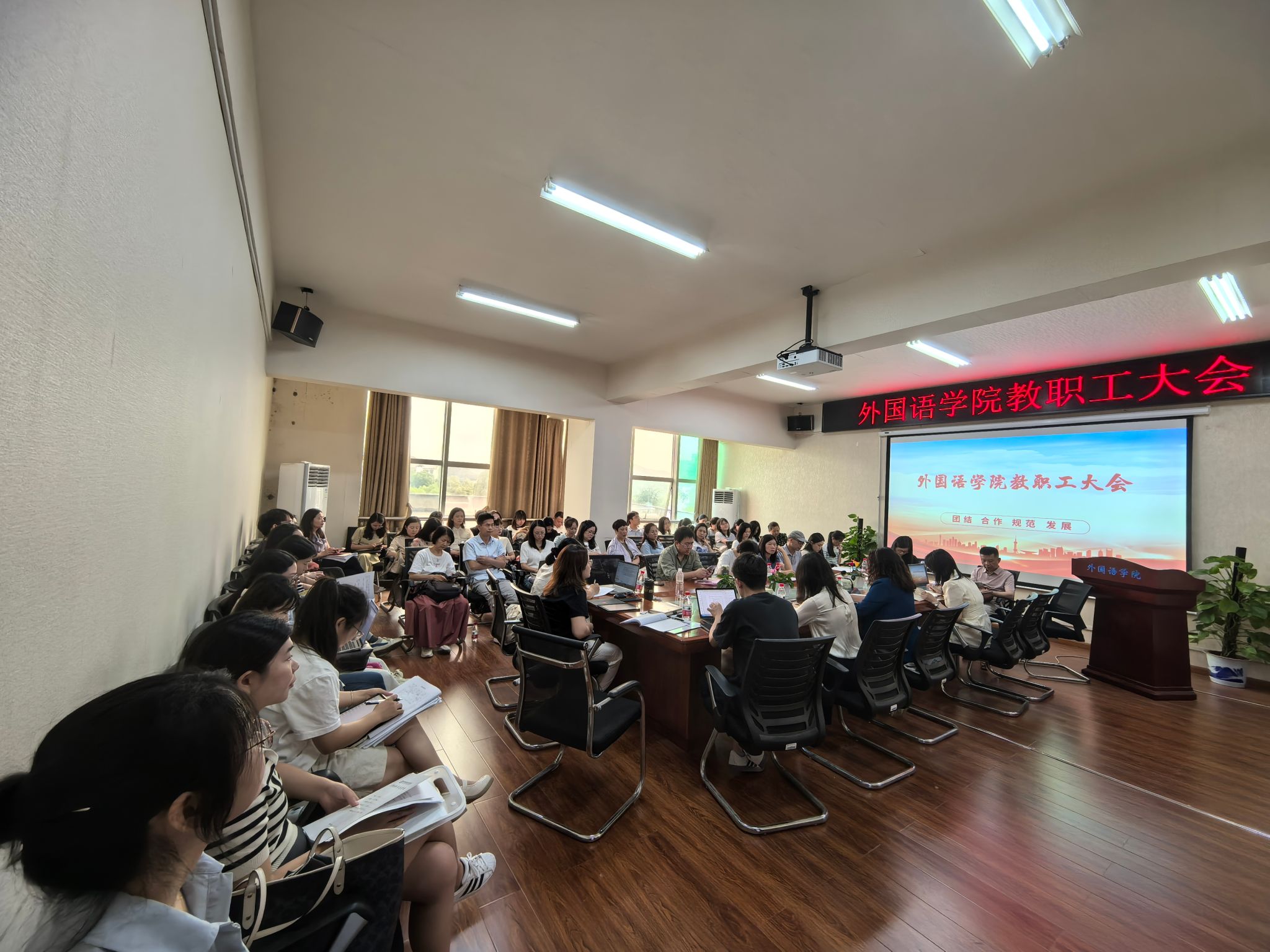 会议现场 此次师德师风教育大会的召开,为外国语学院教师队伍建设指明了方向,未来,外国语学院全体教职工将以更高的师德标准要求自己,以更加饱满的热情和更加务实的作风投入到教育教学工作中,为学院的发展添砖加瓦,为培养更多优秀人才不懈努力。