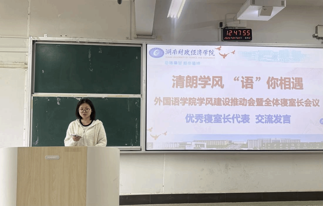 随后,来自22级商务英语一班的优秀寝室长代表龚雨鑫进行了经验分享。她表示,作为寝室长要以身作则,在学习和生活中发挥表率作用,同时要注重协调室友关系,与同学们和辅导员保持沟通,营造和谐友爱的寝室氛围。