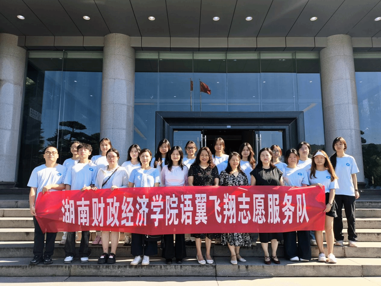 出征仪式最后,全体队员与领导合影留念,鲜红的横幅与昂扬的面庞交相辉映。在热烈的掌声中,外国语学院2025年暑期“三下乡”社会实践活动正式拉开帷幕,“语翼飞翔”志愿服务团队将以语言为桥、以文化为媒,在乡村振兴的沃土上播撒希望的种子,为乡村孩子们插上梦想的“翅膀”,让青春之花在祖国最需要的地方绚丽绽放。