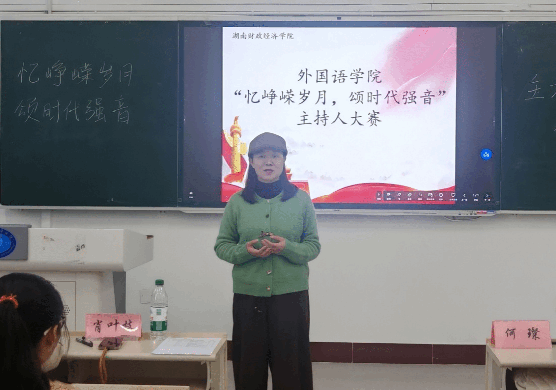10月22日下午,外国语学院“忆峥嵘岁月,颂时代强音”主持人大赛在二教2105教室顺利举行。比赛共9名选手参赛,院学工办主任肖叶枝、学生第二党支部书记胡文志、艺术团团长罗凤、学生分会主席万娜娜、团总支学生副书记何璨担任评委。