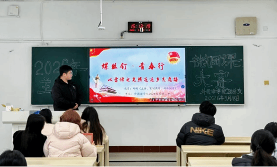 (本网讯)3月18日下午,外国语学院“凝心聚力担使命,踔厉奋发新征程”主题“微”团课大赛初赛在主校区二教2205教室成功举办。团总支书记代承轩、学生分会执行主席谢芊芊、团总支学生副书记何璨担任评委。李小金担任主持人。