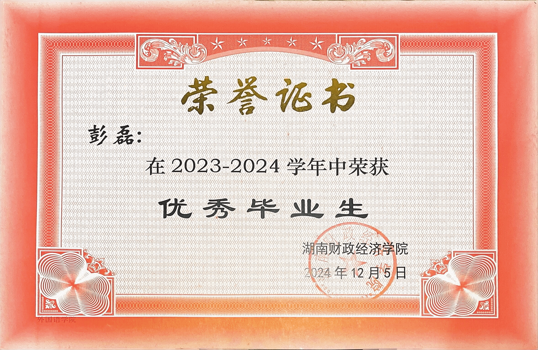 除了专业理论知识学习,我还积极实践,踊跃参与学科竞赛,在湖南大外英语写作比赛中获得省级二等奖,在全国大学生职业规划大赛中获得校级铜奖,在第九届全校“铸牢中华民族共同体、建设伟大祖国、建设美丽家乡”演讲比赛中获得校级二等奖,外国语学院词汇比赛中获一等奖等学科竞赛30余项。同时,我还不断提升技能,获得英语四六级、专四、高中英语教资等多项证书。
