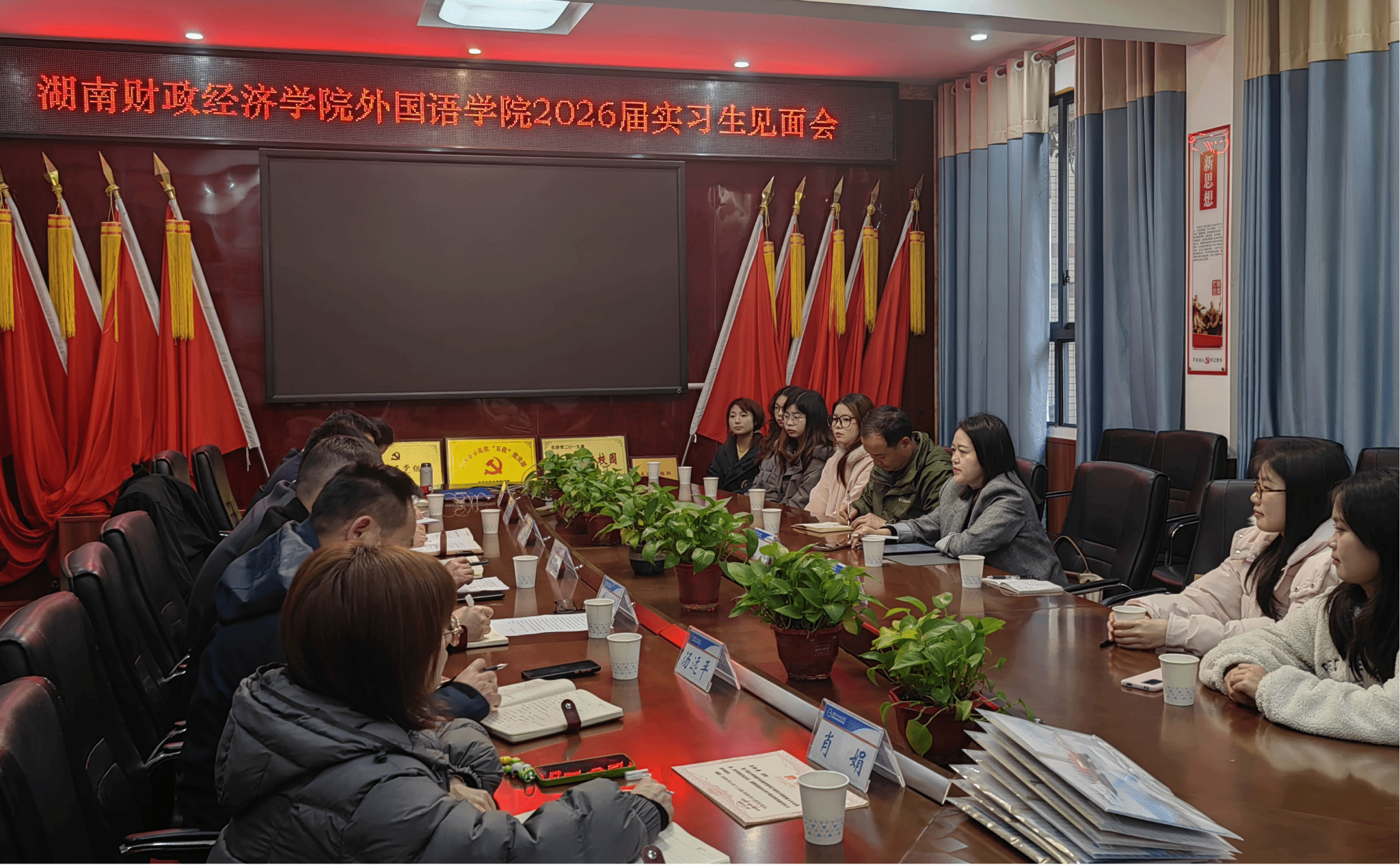 大湖中学党支部书记、校长虢旭,副校长沈建奇携班子成员及带教老师参会;外国语学院院长李曦、英语专业负责人刘智慧、教务办主任殷琛及全体实习生共同参加。