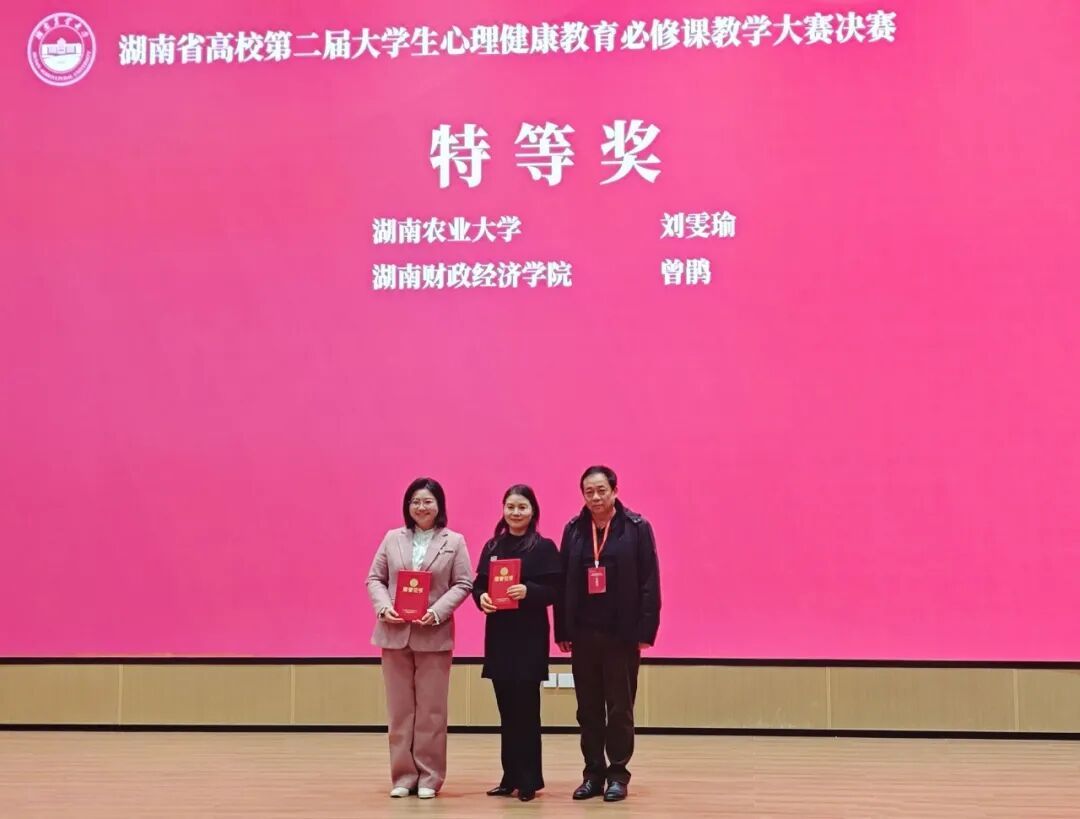 (本网讯)1月20日,湖南省高校第二届大学生心理健康教育必修课教学大赛决赛在湖南农业大学落下帷幕。best365官网心理健康与咨询中心曾鹃老师凭借扎实的理论功底、创新的教学设计以及出色的现场发挥,从众多决赛选手中脱颖而出,荣获大赛特等奖,实现了best365官网在该类省级课程竞赛中的历史性突破。
