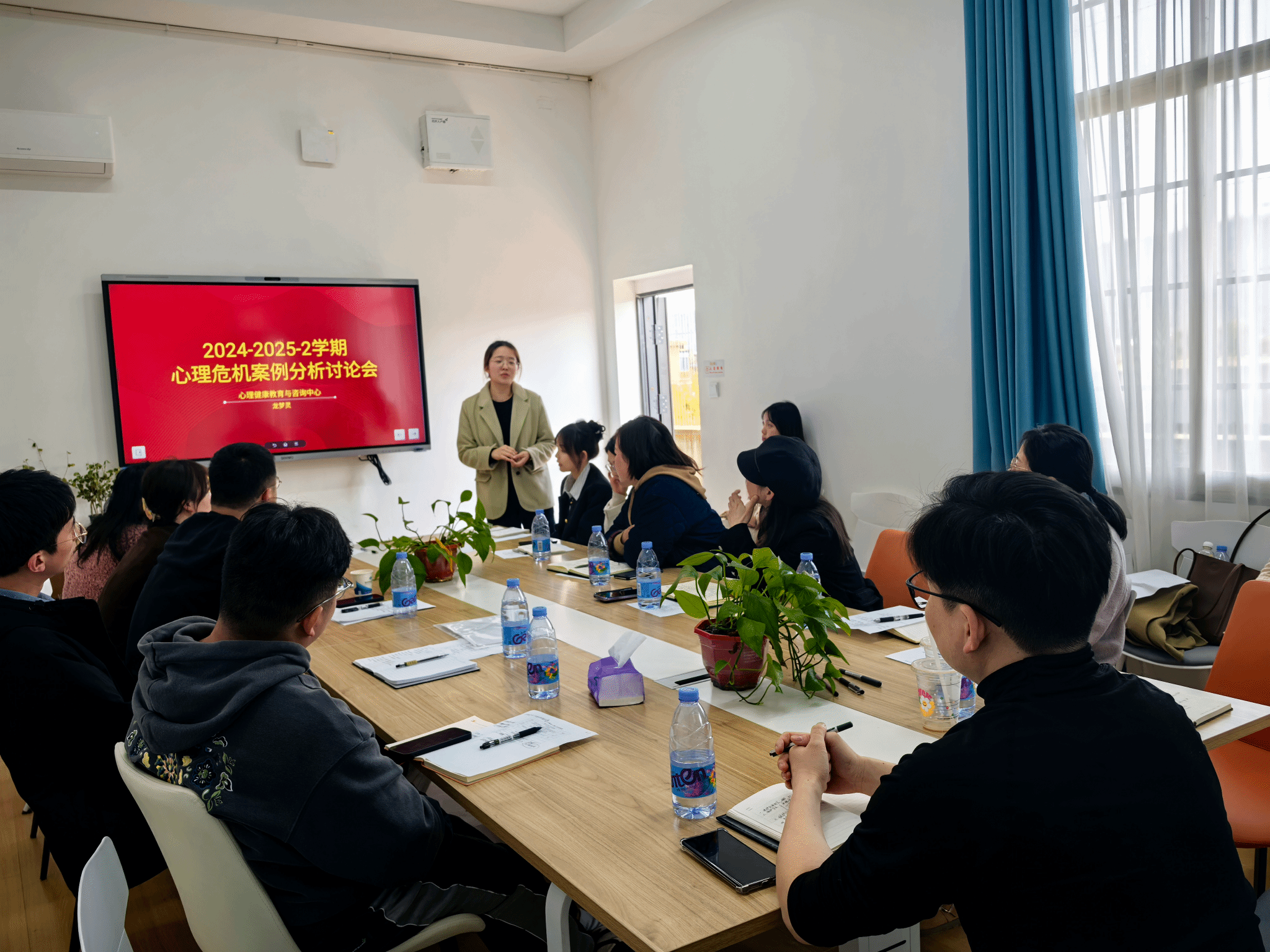 在会议讨论环节,龙梦灵老师结合实际危机案例,与心理专干们展开深入探讨与经验分享,进一步强化了危机干预流程,有效提升专干队伍的风险预判能力和应急处置专业化水平。