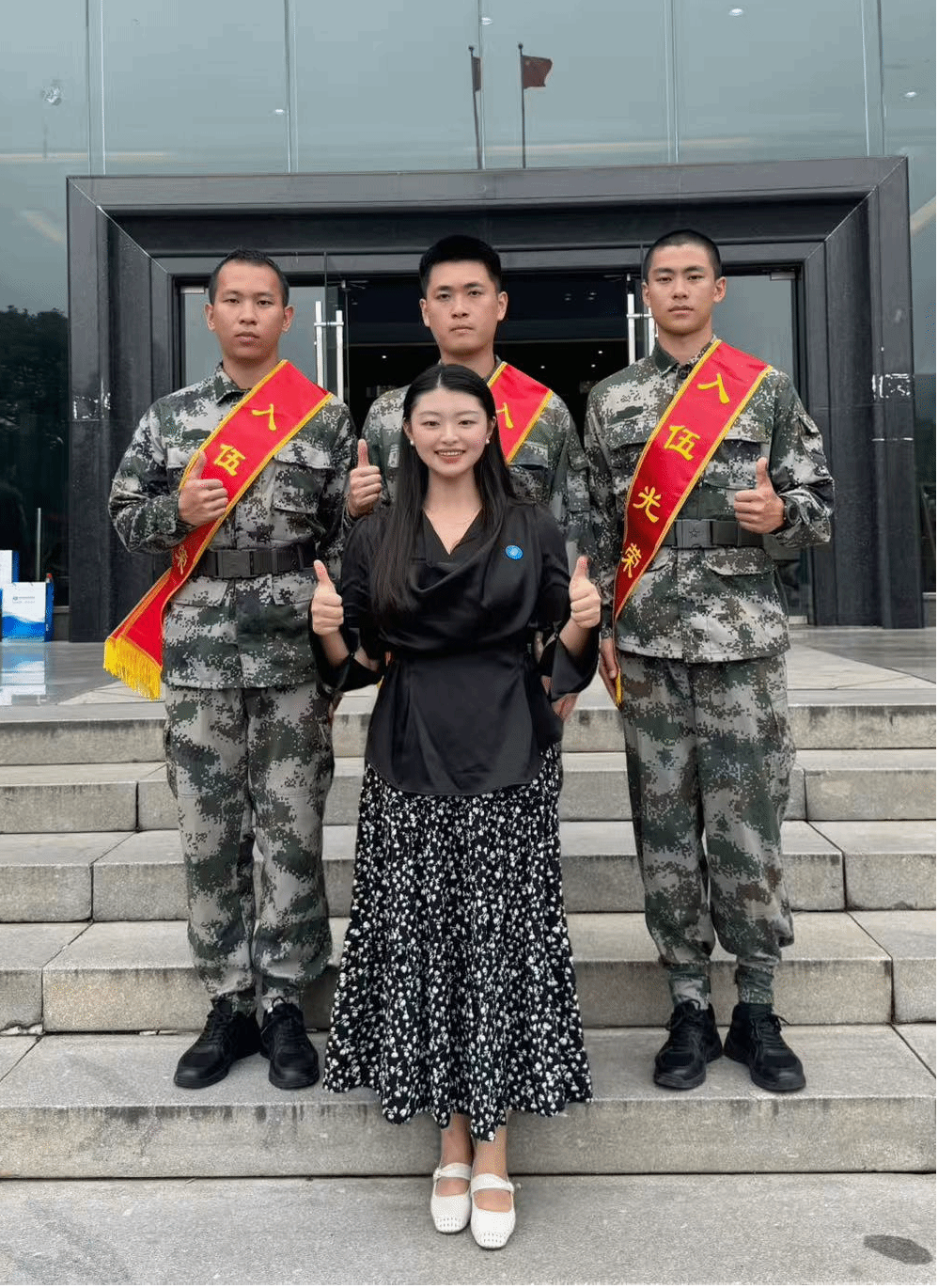 邓老师与部分入伍学生合影