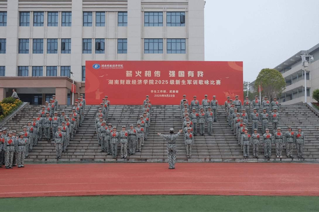 经过激烈的初赛选拔,13支连队脱颖而出。身着迷彩服的同学们身姿挺拔,脸上洋溢着自信的笑容,他们用嘹亮的声音唱出了青春的力量。《财苑之歌》旋律悠扬,展现了湖财学子的朝气与热血;而深情磅礴的《祖国不会忘记》,更是唤起了全场观众的爱国之心,那份深沉的情感在每一个人的心中激荡。
