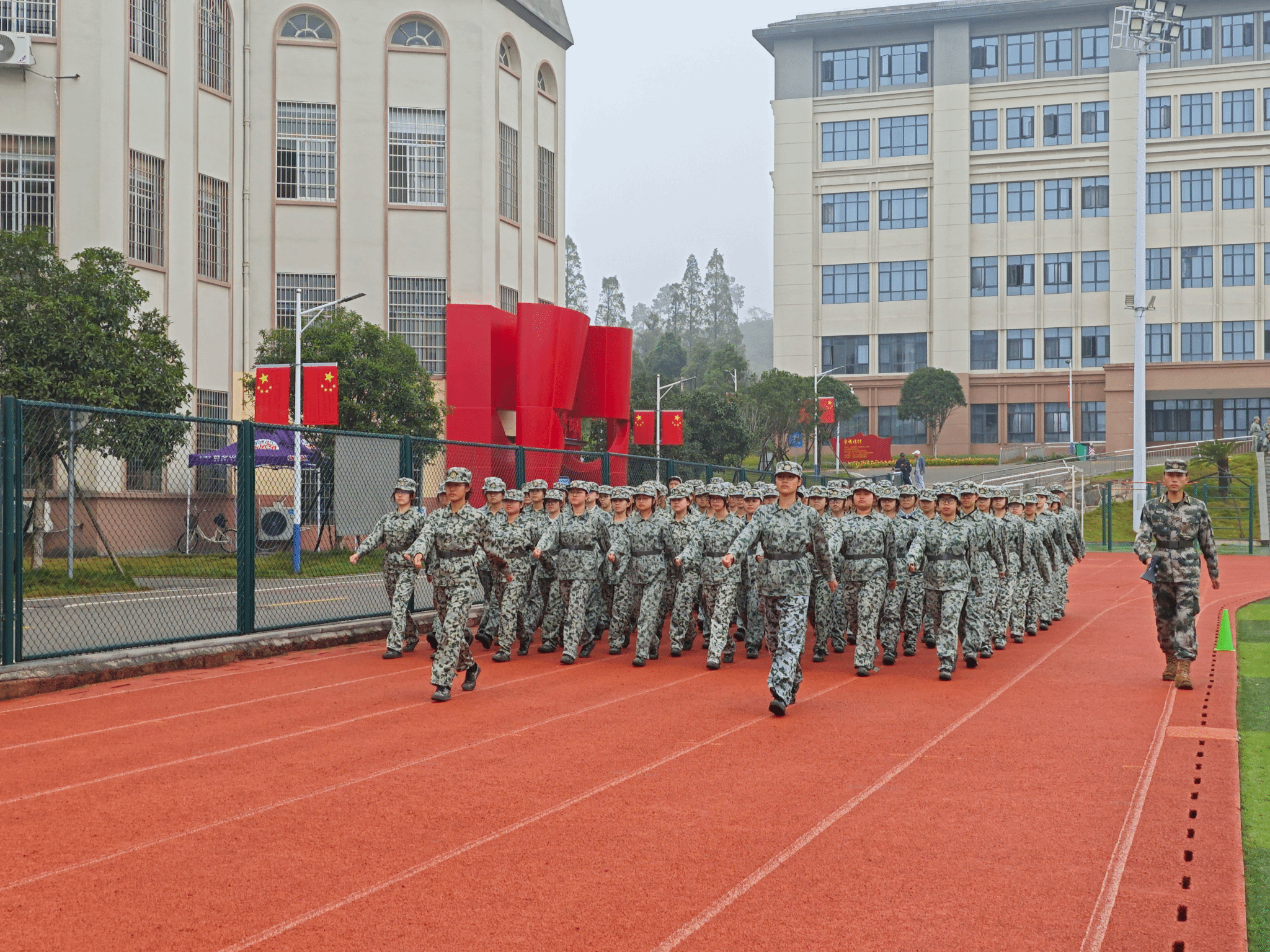 比赛当天秋雨淅沥,参赛连队依然朝气蓬勃。在《分列式进行曲》的激昂旋律中,各连队依次出场。从转体到换步,从敬礼到行进,每一个动作都凝聚着大家的汗水与努力。整齐划一的摆臂、铿锵有力的步调、响亮坚定的口号,展现出各连的训练成果与风采。