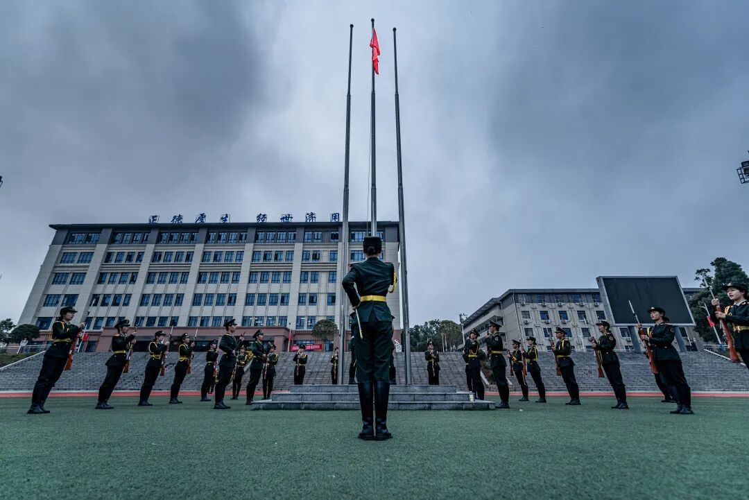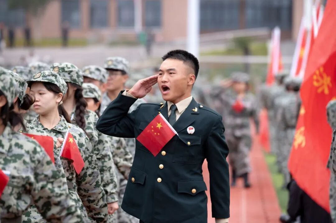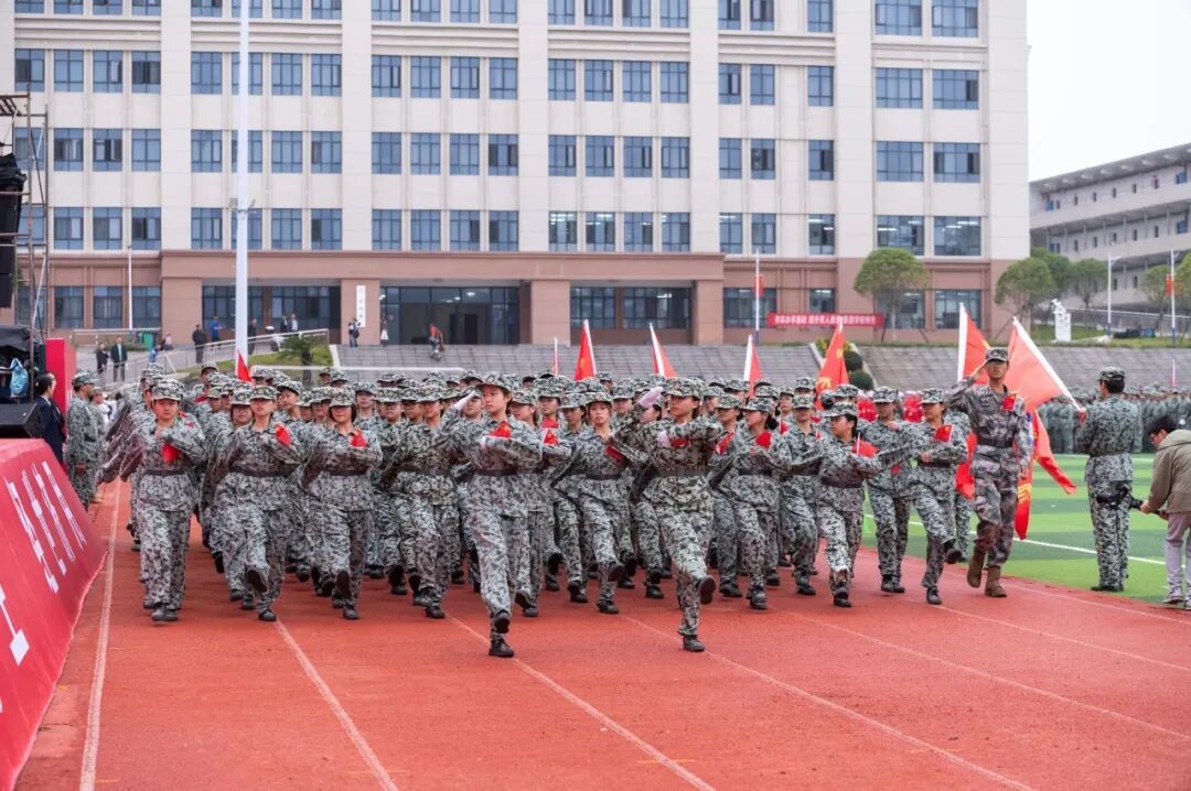 易棉阳代表学校向圆满完成军训任务的全体同学和受表彰的集体个人表示祝贺,向全体教官致以衷心感谢。他指出,军训是一堂生动的教育课,同学们经此一训,不仅锤炼了革命纪律、收获了战友情谊、强健了体魄,更铸就了可贵的战斗精神。他勉励同学们务必认真学习,脚踏实地努力奋斗,在全面超越自我、塑造自我的过程中实现高质量成长,达成高质量就业,让青春在反复磨练中绽放光彩。