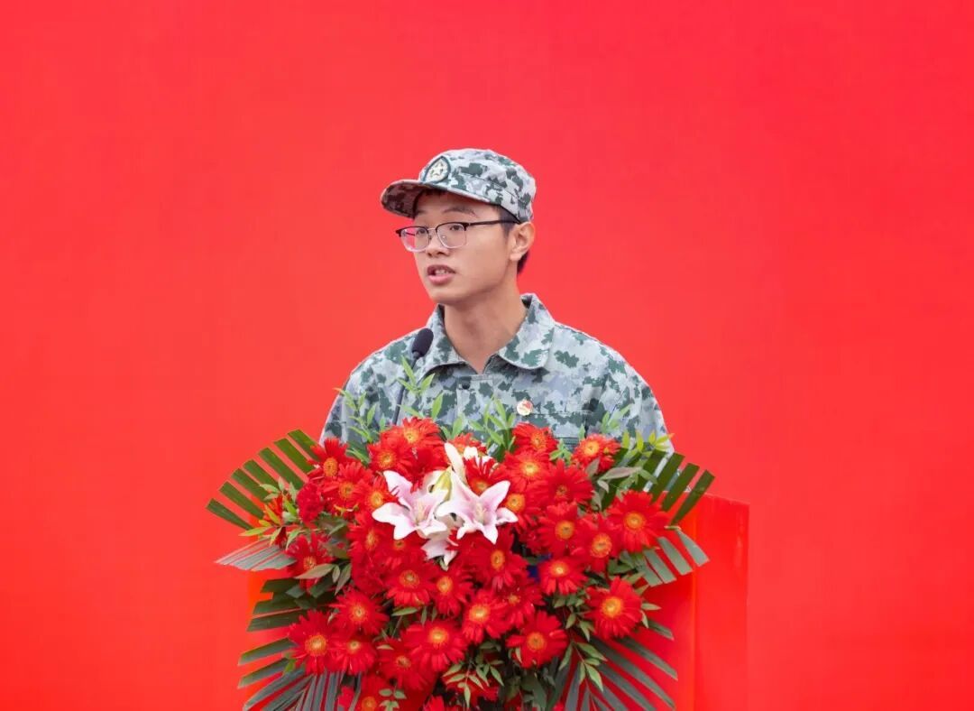 马克思主义学院2025级思想政治教育二班田羽作为新生代表发言。他回顾了军训期间的点滴成长,表示将秉承校训精神,努力成长为有理想、敢担当、能吃苦、肯奋斗的新时代好青年。