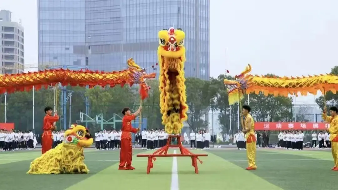 (图为校运动会舞龙舞狮活动)