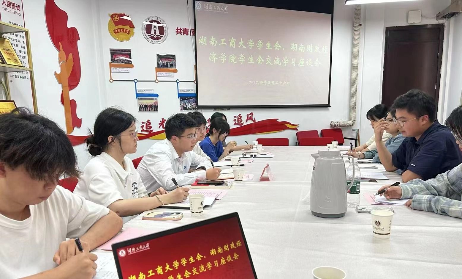 在校园文化建设方面,双方一致认为文化活动是丰富学生课余生活、提升校园文化底蕴的重要途径。湖南工商大学学生会介绍了其“文化与科技相融合”的“艺术工商”文化品牌建设的经验和做法,双方在讨论中表示将加强在文艺比赛、学术讲座、志愿服务等方面的合作,深入推进“第二课堂成绩单”建设,共同打造具有特色的校园文化品牌。