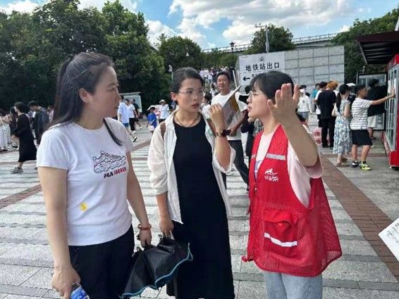 在橘洲洲头、岳麓山畔,湖财青年身着红马甲,忙碌的身影遍布景区。在地铁出口,他们热情接待每一位游客,为其提供简单的旅游咨询;在游客中心,他们耐心解答游客疑问,积极协助景区工作人员开展行李寄存、医疗救治等服务;在景区步行入口,他们积极帮助游园旅客进行预约,引导游客依规有序入园。他们纷纷化身一抹抹“橘洲红”、“麓山红”,为景区再添一道靓丽的风景线。