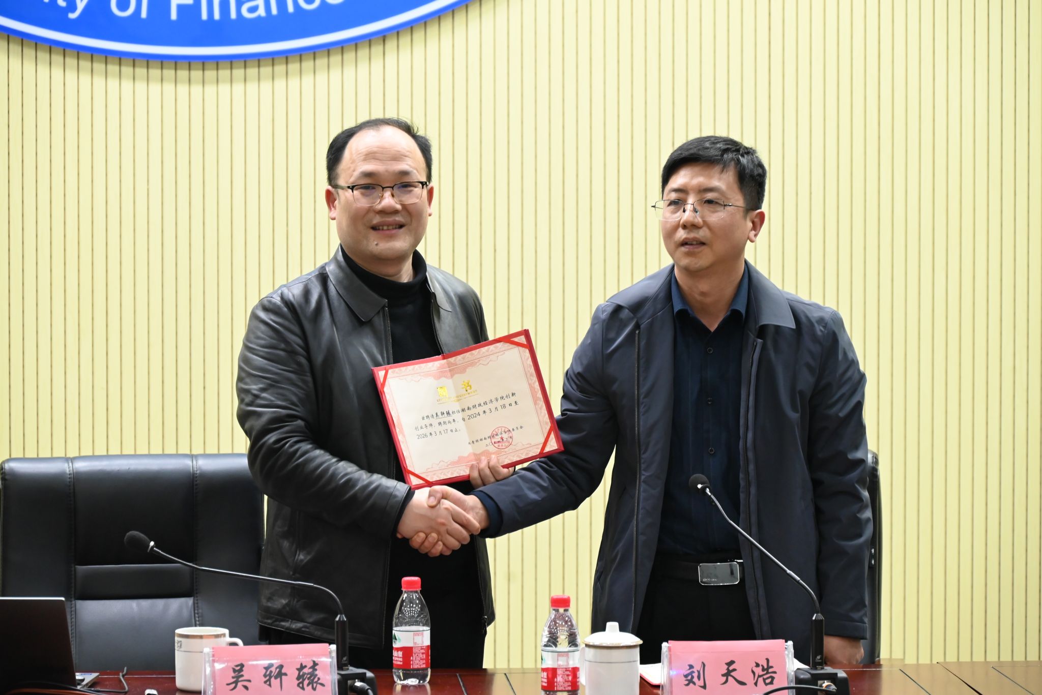 在随后举行的创业导师聘任仪式上,刘天浩为吴轩辕教授颁发聘书。