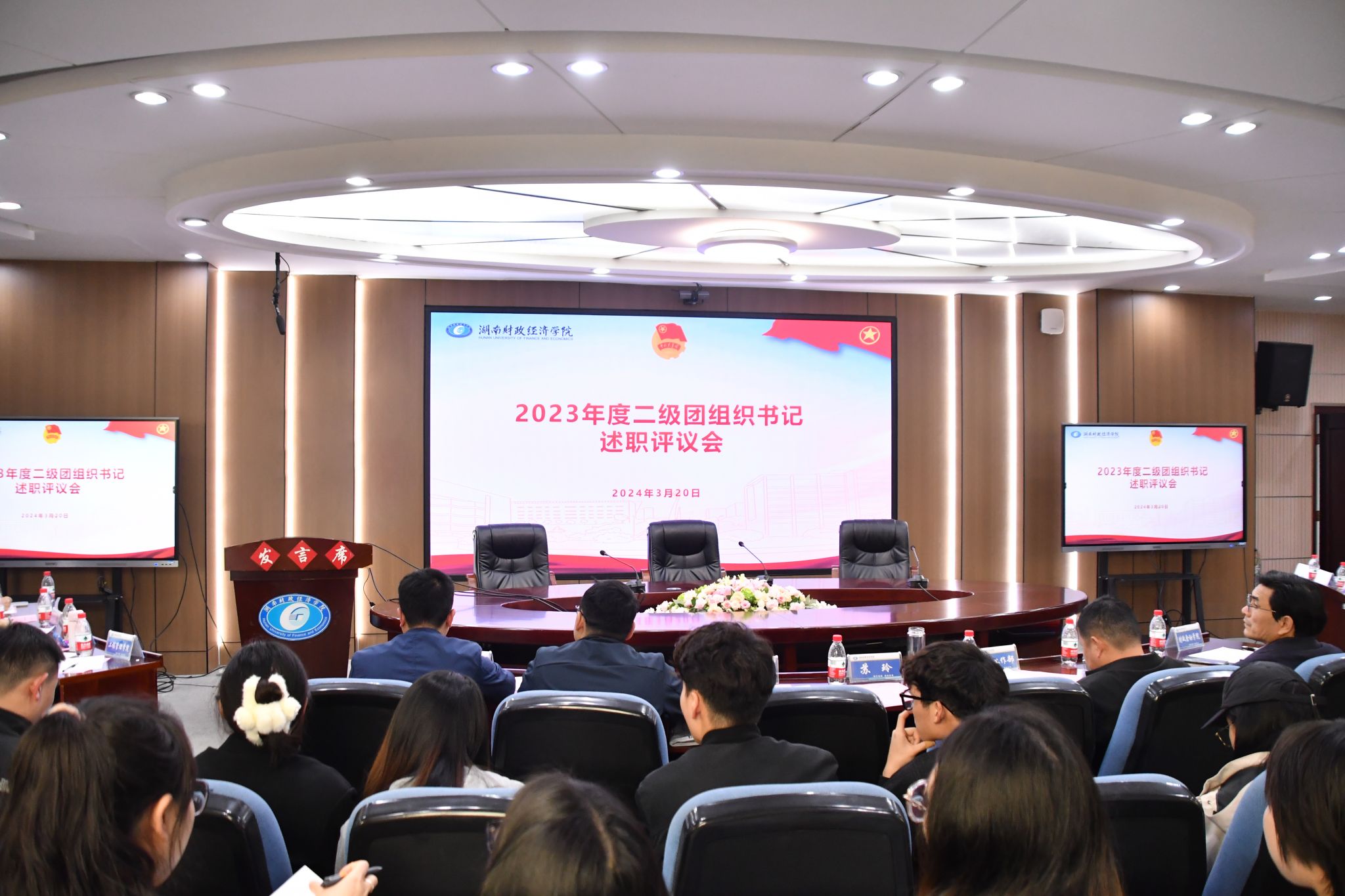 各二级团组织书记围绕“三力一度”,结合自身实际,对政治引领、组织建设、青年服务、社会实践等方面的工作实效进行了述职汇报。会议对各二级团组织书记2023年度履职情况进行了量化评价。