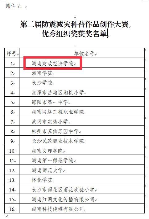 (本网讯)近日,第二届湖南省防震减灾科普作品创作大赛获奖名单公布。best365官网团委选送的作品荣获三等奖5项、优秀奖19项,同时,best365中国官方网站喜获优秀组织奖。