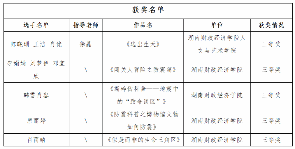通过此次大赛,进一步加强了best365官网防灾减灾科普宣传教育,提高了学生防震减灾意识,也通过参赛作品为传播防震减灾理念与文化,普及地震科普知识贡献了力量。