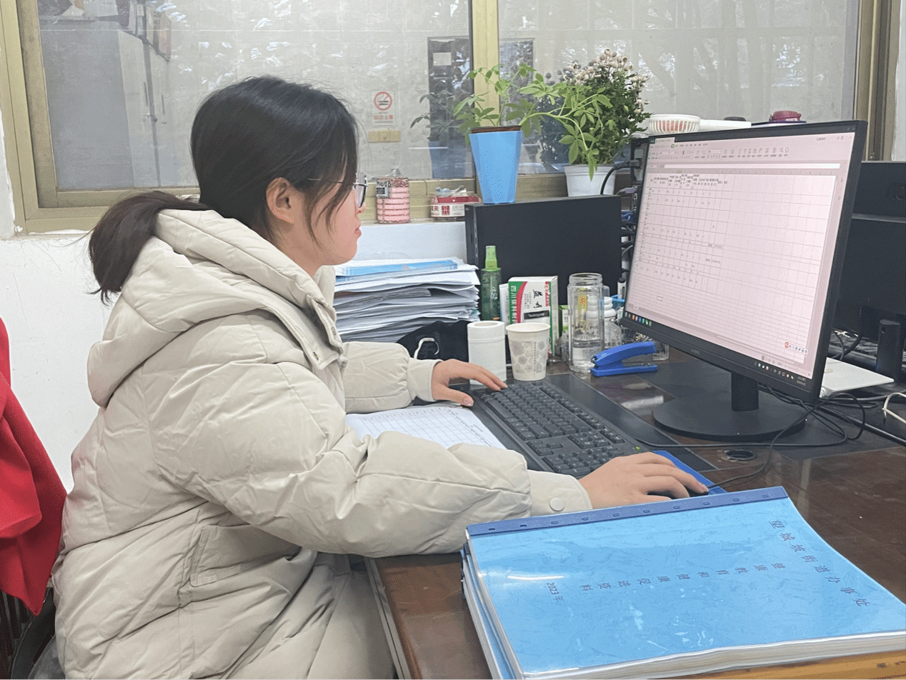 段细细在为望城坡街道居民查阅相关资料 何瀚轩/摄