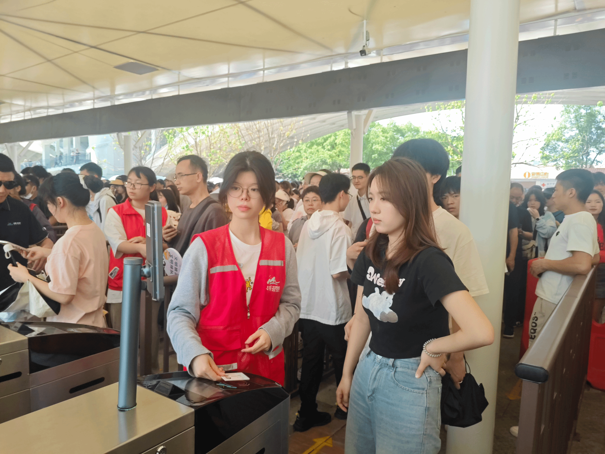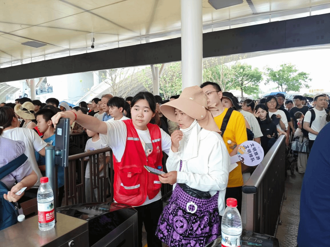 图为best365官网青年志愿者引导游客入园