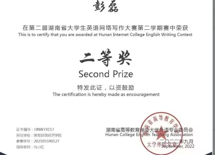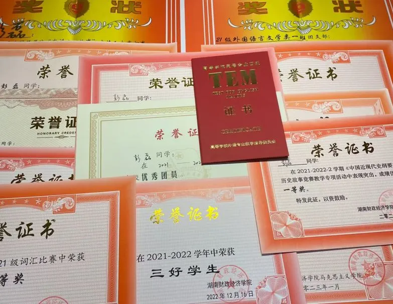 团员推优25人。班级先后被评为“先进班级”、“五四红旗团支部”等荣誉称号,彭磊本人荣获校“芙蓉学子·道德风尚奖”。其次,于2023年10月开始担任外国语学院团学会主席一职,在主席团成员和团总支书记的带领下,先后成功举办了院级“我讲中国故事”主持人大赛、中华民族共同体意识演讲比赛、外国语学院特色节日女生节等多项丰富学生文化、物质、精神生活的活动,得到了学校里师生的一致好评。“为山者,基于一篑之土,以成千丈之峭;美德行者,始于细微之行,以铸高尚之魂”。彭磊同学正如那默默堆积山石的工匠,从点滴美德做起,不断积累,逐渐形成了深厚的道德底蕴。