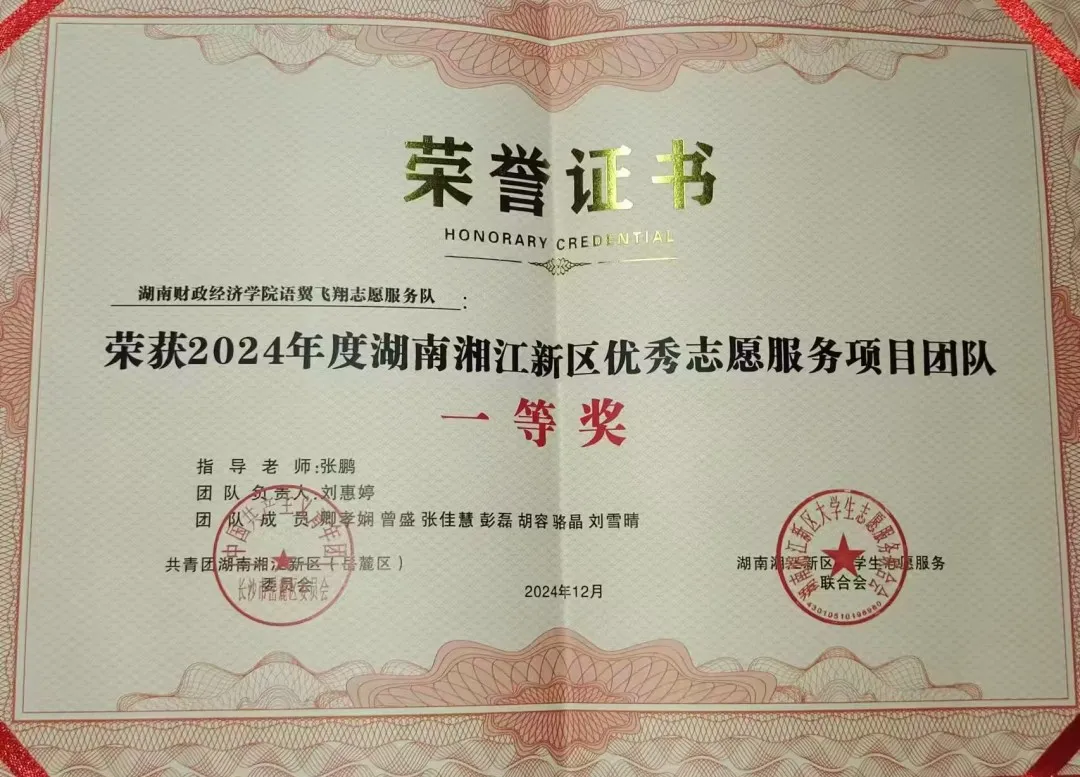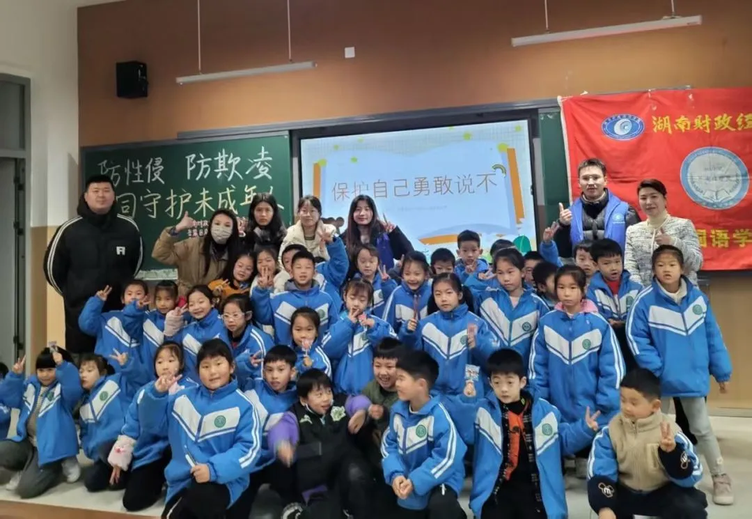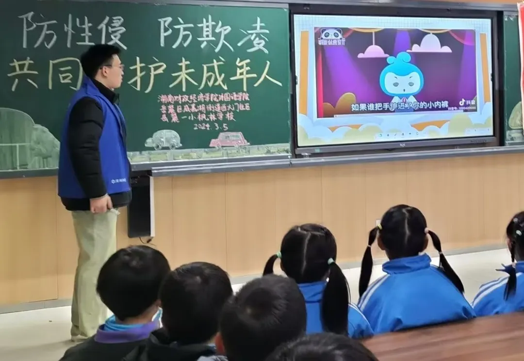 自2023年起,彭磊带领语翼飞翔志愿服务团队积极投身社会服务,传递湖财美德。他深入社区,在岳麓一小枫林学校、中央美郡幼儿园、梅溪湖小学和咸嘉湖小学等地,开展了“防溺水”、“防性侵”、“防校园暴力”等一系列宣讲活动,授课学生超过1000名,志愿服务时长累计600余小时,同年,他带领团队前往湘西密灯村,走访留守儿童家庭,给予关爱和鼓励。此行得到了湘西市委主流公众号的报道,并在学校“三下乡”社会实践活动答辩中荣获冠军。同时,服务队也被湖南湘江新区评为“优秀青年志愿服务项目团队”。