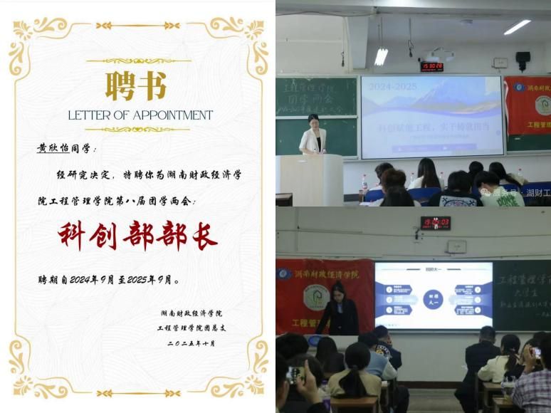 光,不仅要自己拥,更要传递给他人。作为班级学习委员和院团学两会科创部部长,黄欣怡的舞台远不止于书桌与课堂。向上搭建成长平台:她牵头统筹策划科创赛事,反复打磨流程、协调部门分工,带动身边同学走出课堂、投身实践让科创的种子在校园里生根发芽。