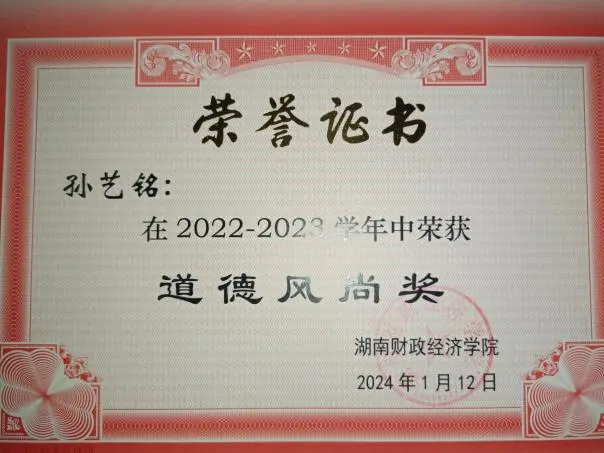 不仅如此,她还担任了会计学院青年志愿者协会主席,统筹推进协会章程确立与活动策划工作,将会院青协从无到有建设起来,先后与荣龙社区、湖南省科学技术馆达成合作,并开展了“财商课堂”与“反诈课堂”、“雷锋精神”宣讲活动、助力银龄经济等多项活动。一路走来,孙艺铭始终牢记责任,带领同学们不断探索志愿实践的真谛。她相信,微小的付出也能汇聚成爱的海洋。正如她所说:“真正幸福的人,都活成了一束光,先熠熠生辉,再照亮他人”。