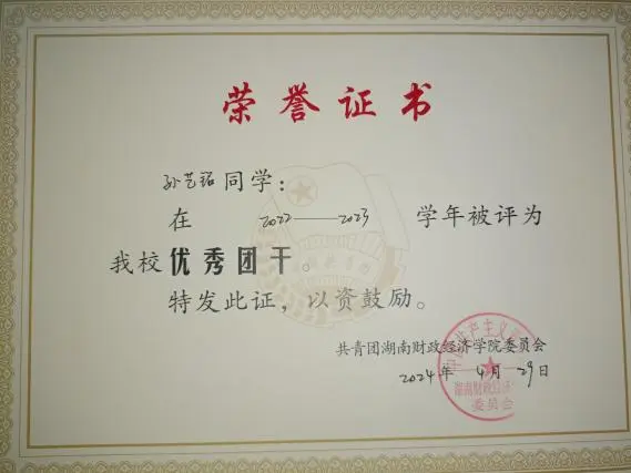 在逐梦与奉献的道路上,孙艺铭的身影熠熠生辉。身为中共预备党员的她,现就读于会计学院2022级财务管理四班,大学期间积极参加各类志愿服务,累计服务时长达400小时,先后荣获多项校内外活动优秀服务个人奖项,包括“省级七彩假期优秀志愿者”“道德风尚奖”“优秀志愿者”“暑期三下乡优秀实践者”;此外,在学习与竞赛方面,她斩获“校级三等奖学金”“校级职业规划大赛一等奖”“企业模拟经营竞赛三等奖”;在学生工作领域,被评为“优秀共青团干”“优秀学生干部”,以出色表现彰显了全面发展的湖财学子的精神风貌。