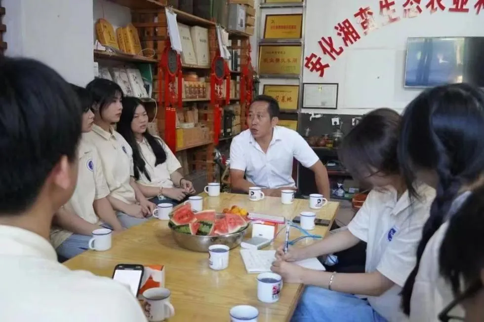 实践之墨:在安化县冷市镇南华村,实践队带着青春的朝气与活力,行走在南华村的田野山间,不断推进乡村振兴的发展。队员们深入鑫福中药材合作社的林下经济示范基地,调研黄精种植现状,为产业发展建言献策;走进白沙溪茶厂,探寻千两茶技艺,助力茶文化传承与村民就业增收。现如今,电商直播成为助农新亮点,队员们也紧跟时代浪潮,开启“直播+公益”模式,推广黄精、千两茶等特色农产品,直播间点赞超6.5万,销售额突破2400元。此外,实践队还开展防溺水、卫生健康知识科普及反诈宣传,增强村民安全意识,筑牢乡村安全防线。他们以实际行动帮助南华村创新升级,展现了新时代青年的责任与担当,为乡村振兴描绘出一幅生生不息的画卷。