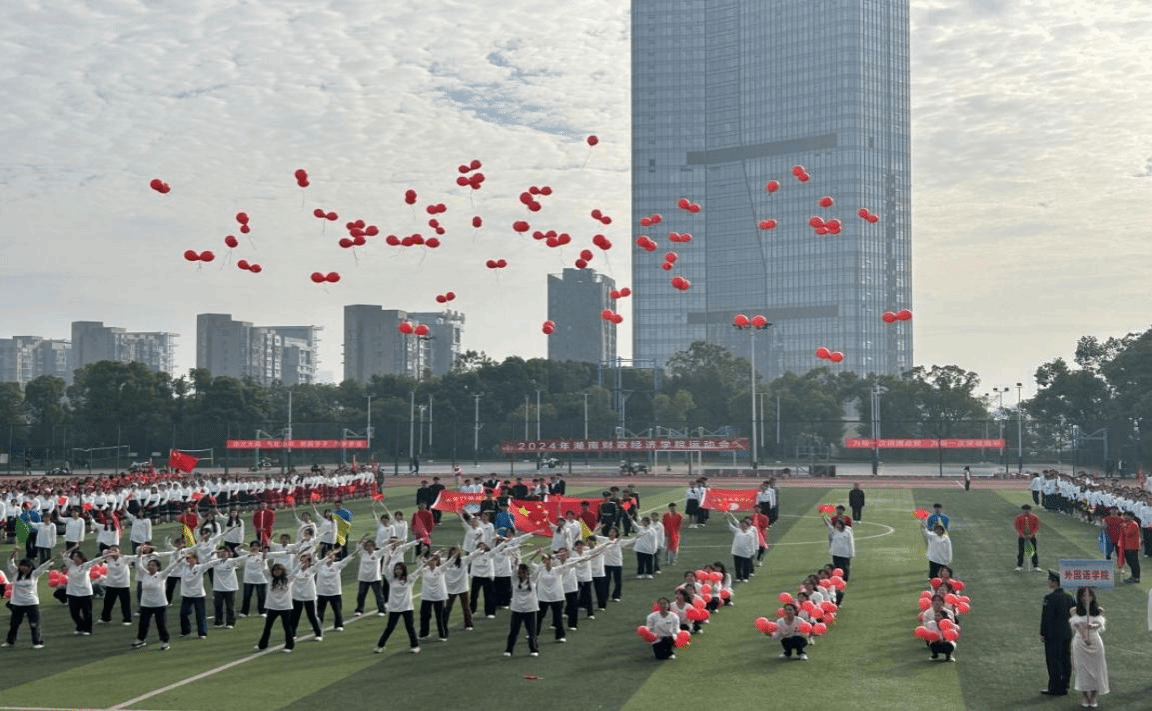 随着主持人激情洋溢的介绍:“踏着整齐划一的步伐,伴随着激昂响亮的口号,向我们走来的正是外国语学院方阵!”外国语学院的运动健儿们昂首阔步,步伐坚定有力,展现出外院学子特有的自信与风采,瞬间吸引了全场目光,赢得了观众席上阵阵热烈的掌声。