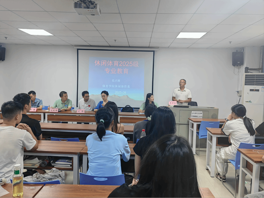教师代表范才清主任就休闲体育专业的学科定位、发展动态及已有成就进行专业阐述,增强新生对专业的认知与信心。在校生代表彭北平同学结合自身经历分享学习心得,传递积极向上的成长信念。