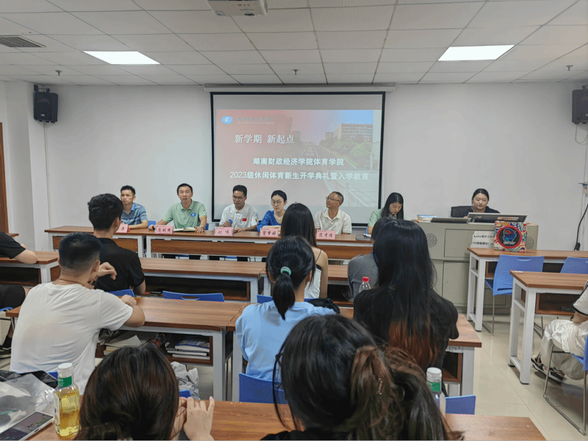 2025年9月7日15时,best365中国官方网站体育学院于体育馆238教室隆重举行2023级休闲体育专业新生开学典礼暨入学教育活动。体育学院院长刘伟、副院长宫梦婷、直属党支部书记范则周、学工办主任黄涛、团总支书记邓玉平、教师代表范才清主任、班级助理郭韵莹、在校生代表彭北平及2023级休闲体育三班全体新生出席本次典礼,范则周主持。