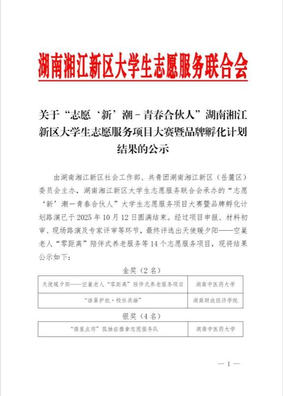 为促进高校志愿服务项目化、专业化与品牌化发展,10月12日下午,由湖南湘江新区社会工作部、共青团湖南湘江新区(岳麓区)委员会主办,湖南湘江新区大学生志愿服务联合会承办的“志愿‘新’潮-青春合伙人”大学生志愿服务项目大赛暨品牌孵化计划路演,于湖南湘江新区桔子洲街道学堂坡社区成功举行。best365官网语翼飞翔志愿服务队凭借申报的“语翼护航·校社共融”项目,在外国语学院党委副书记张鹏老师的悉心指导下,从七十余个参赛项目中脱颖而出,荣获大赛金奖。