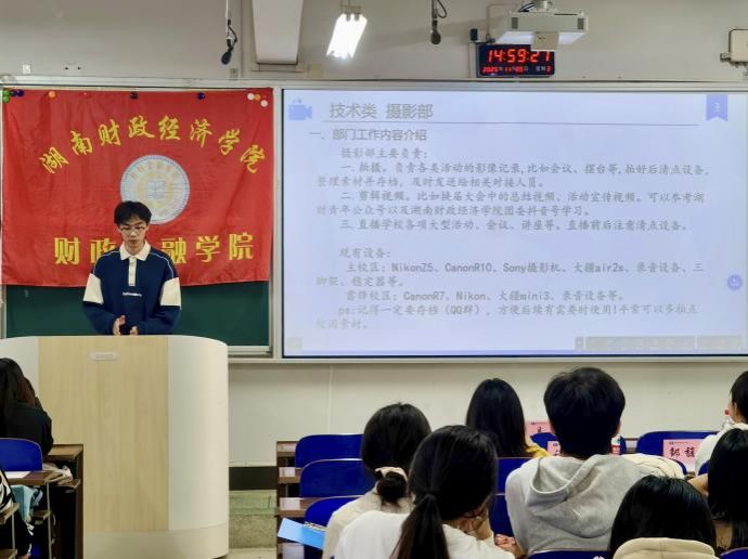 短暂休会后,在办公室副部郭雨婷的主持下,干部培训大会正式拉开帷幕。为提升学生干部综合能力,本次大会邀请到校团委团总支副书记胡媛、校团委采编部部长邹馥泽、校团委摄影部副部褚陈磊,他们为同学们带来了干货满满的工作经验分享。首先,校团委团总支副书记胡媛结合自身工作经验,强调了制度与协作的重要性,引导构建人情先行的工作氛围。接着,校团委采编部部长邹馥泽详细拆解了推文与新闻稿在语言风格及核心诉求上的差异,为大家的文稿撰写工作提供了新思路。最后,校团委摄影部副部褚陈磊分享了自己在以往工作中积累的众多拍摄经验,其中着重介绍了相机的使用方法,助力学生干部提升摄影专业能力,为校园宣传工作定格更多精彩瞬间。