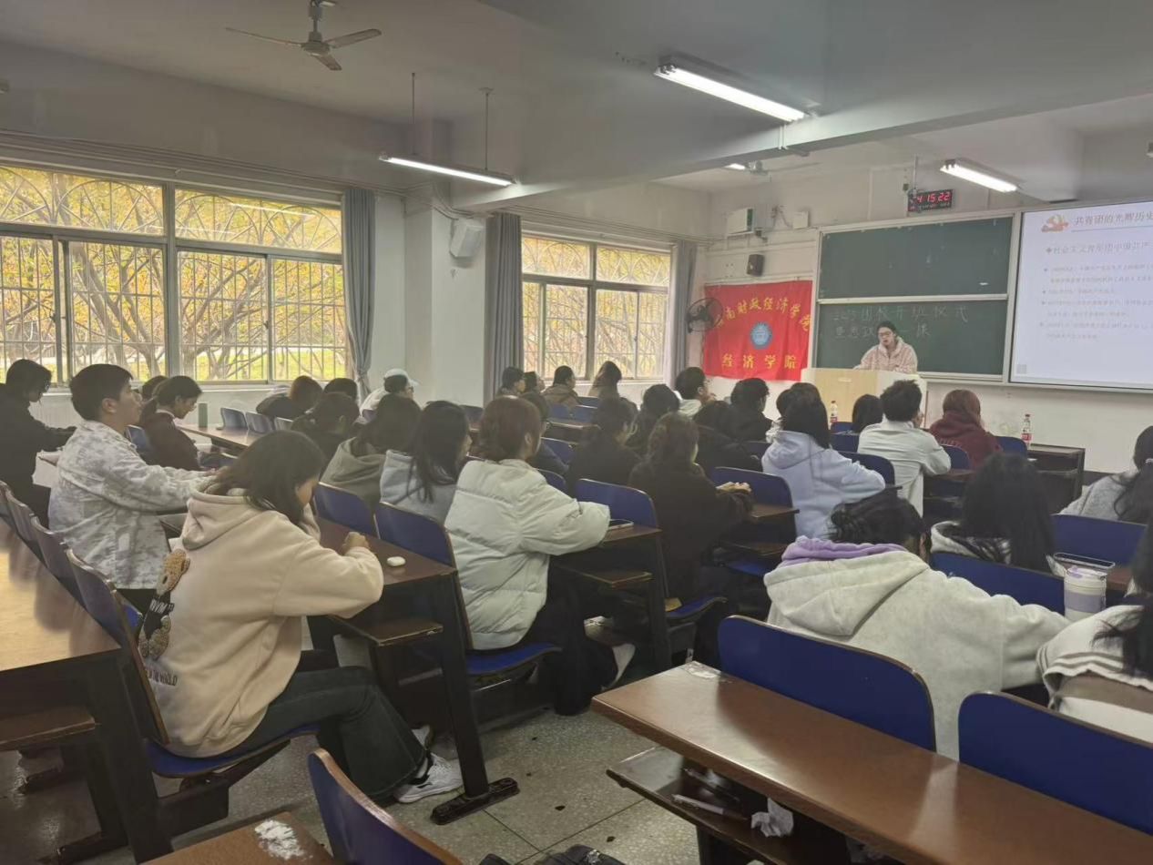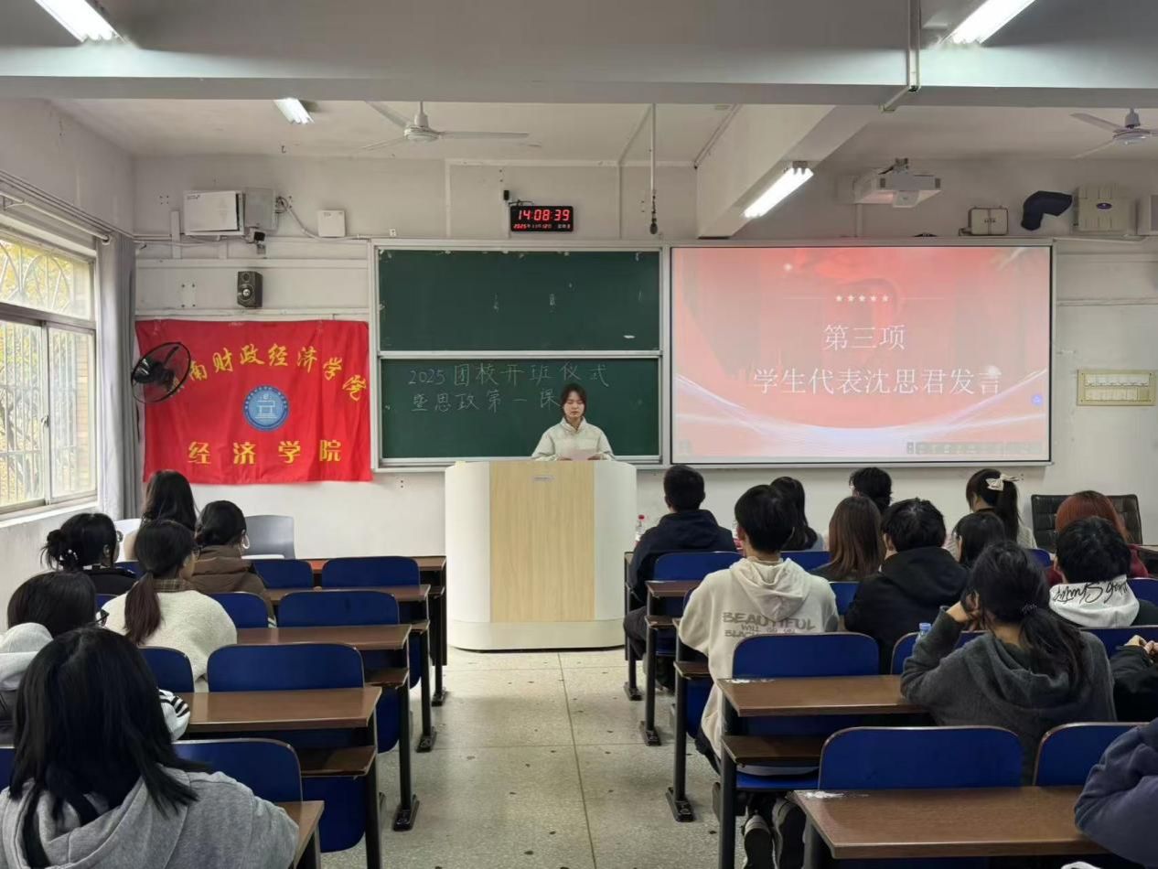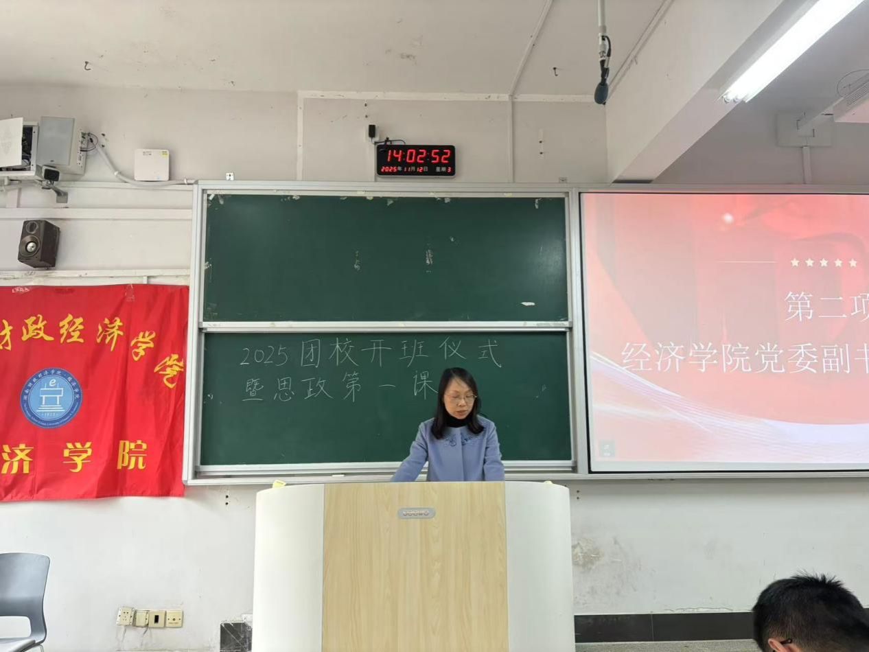 11月12日下午,best365官网经济学院于主校区3101教室举行2025年下半年团校基础班开班仪式暨思政第一课。参加本次仪式的有经济学院党委副书记刘英、学工负责人谢龙、团总支书记宋赛男、学生支部书记欧璐以及经济学院团校全体成员。