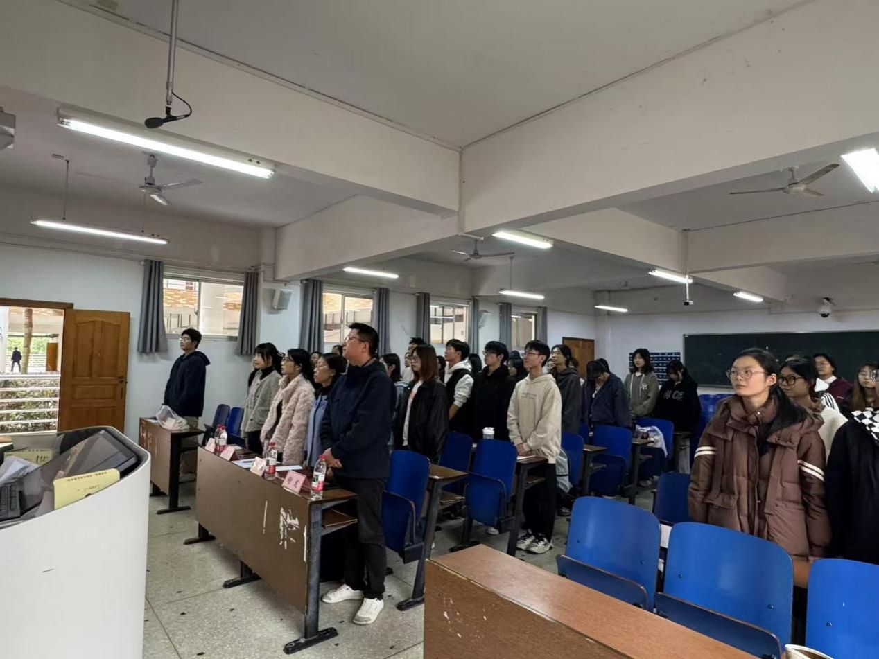 全体参会成员起立,目光坚定,一同感受共青团的光荣与使命。激昂旋律回荡全场,展现出青年学子的蓬勃朝气。大家以歌声明初心,立壮志,满怀热忱投入团校学习,励志以青春之力践行使命,书写新时代青年担当。